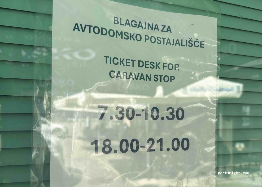 We stayed for 12 h, for 10 euros, just car, without services. Payment in office near pizzeria. Water, showers, only 1 wc available. Great price, because campings in this area costs 35-40 euros per night. Supermarkets, hiking trails, petrol station nearby. A walk to Virje waterfall. 12 h started from 10pm to 10 am, also if you arrive few hours earlier, as we did.