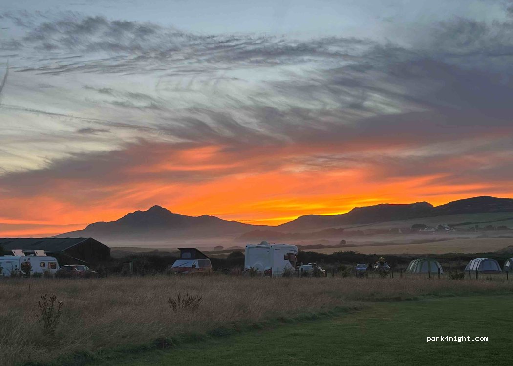 Farmers field converted to campground. Owners super friendly and great facilities: toilets, showers (hot and free!) and even a communal kitchen cleaning area. Great view of surrounding Welsh countryside. Available to tents, campers, RVs (£7pp pn) and they even have ‘glamping’ pods. Recommend!
