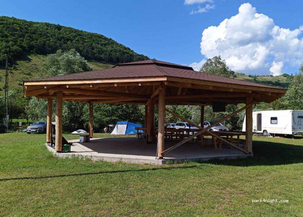 Schöner und ruhiger Campingplatz im Tal neben dem Fluss, wo Sie sich erfrischen können und wo Sie angeln können. Schöner Spielplatz für Kinder. WC, Duschen (sonnengewärmt) und Küche vorhanden. Auch mehrere Feuerstellen und Grillplätze. Mehrere Pfosten mit Strom und Wasser. Grau- und Schwarzwasser können neben dem Gebäude mit Toiletten entleert werden.
