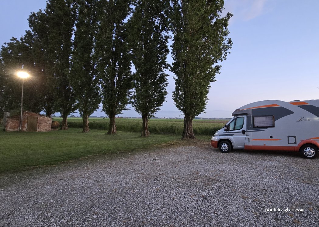 se volete dormire in un posto silenzioso immerso nella campagna e mangiare bene, questo è il posto giusto. i proprietari gentilissimi fanno spostare per la notte dopo aver cenato. non ci sono carico/scarico ma silenzio e tranquillità. consigliamo la tigellata e i loro tortelli di zucca con riduzione di passito, fantastici!!!