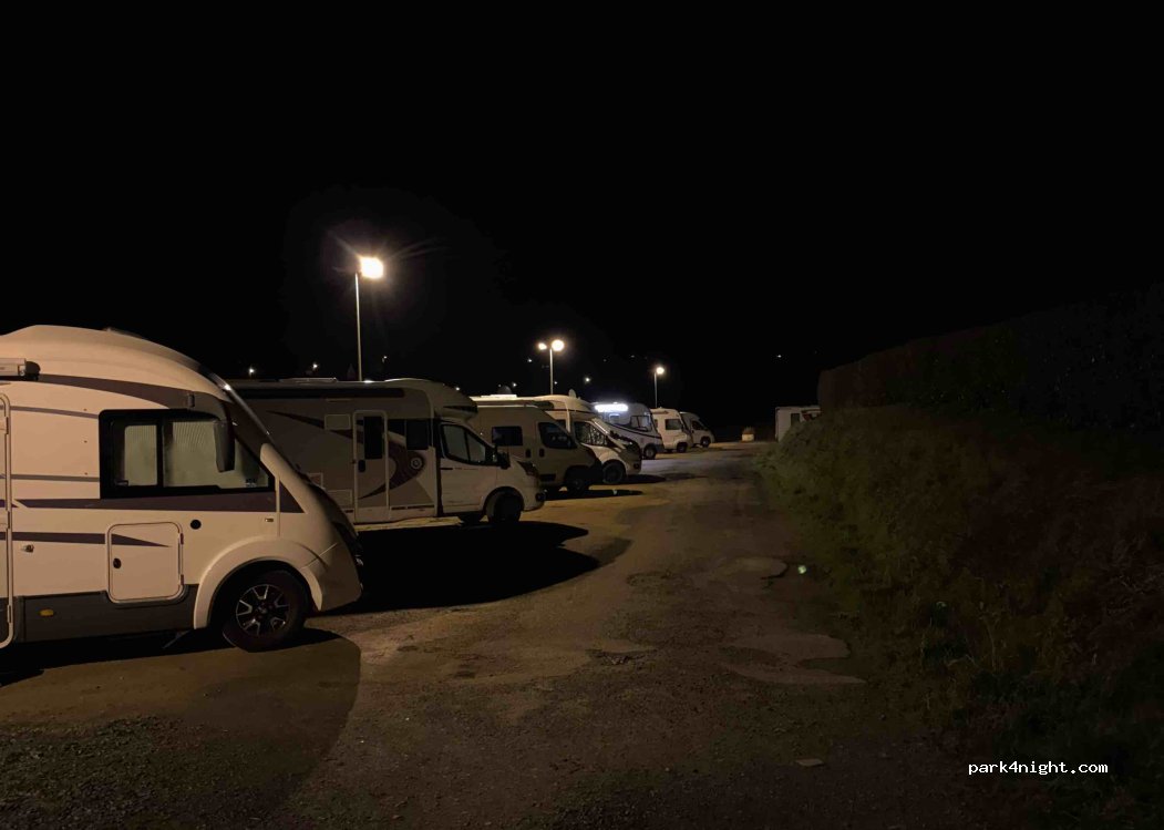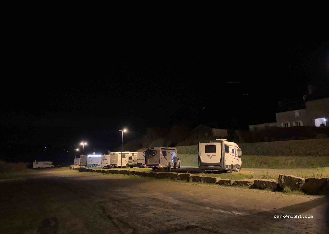 3 étoiles pour le parking attenant très fréquenté la journée. Bien situé, il suffit de traverser la route pour accéder à une belle plage de sable fin et la crêperies Breizh’ilien à 2 mn. où nous nous sommes régalés. L’aire à côté d’un parking voiture bruyant en journée, mais calme la nuit, les emplacements en épis sont corrects et délimités, prévoir des cales. Pas de réception télé hertzienne.