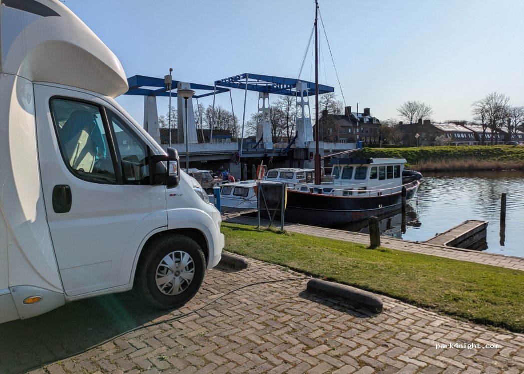Dichtbij het dorpje, leuk aan het water, hele vriendelijke havenmeester, alle voorzieningen aanwezig, maar met echt één groot nadeel: de herrie van de weg en de brug.