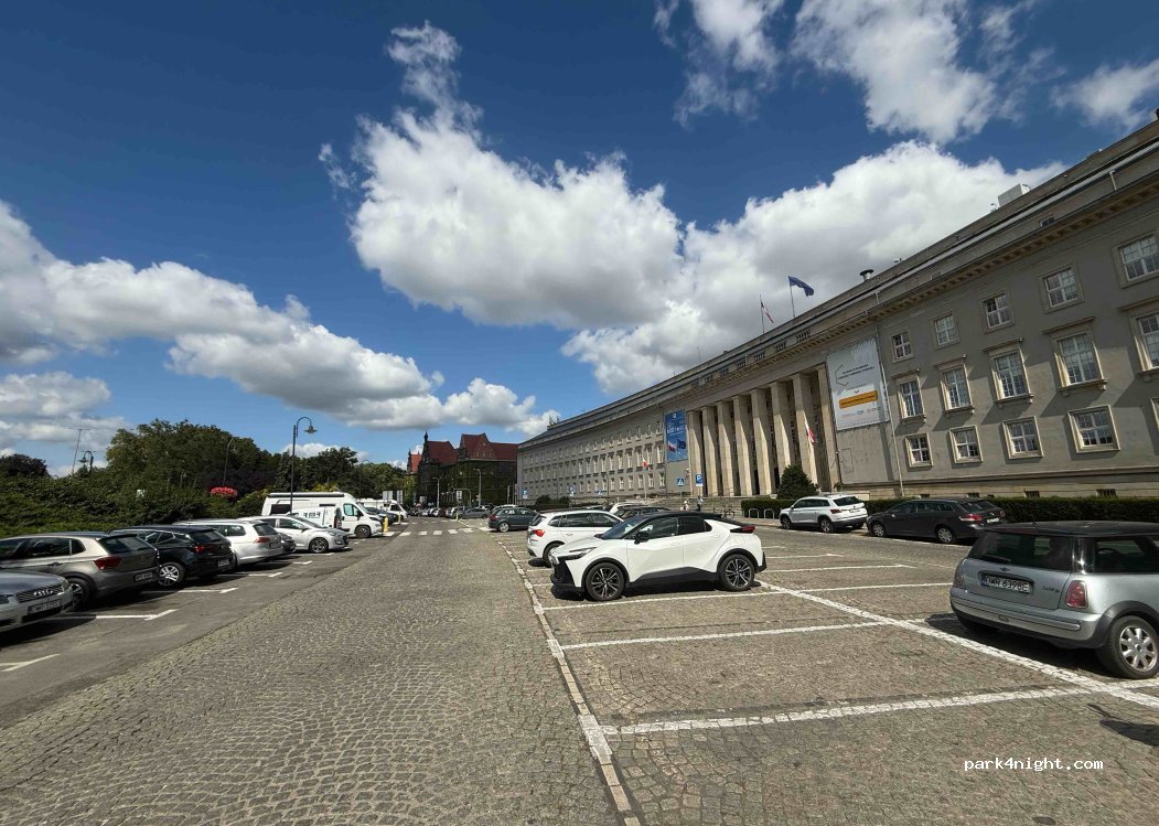 Super endroit pour se garer pour la nuit à quelques minutes à pied du coeur de la ville. Illuminé et sécuritaire la nuit. Situé en face du bureau provincial, il arrive parfois qu'un agent de sécurité se présente à la porte, mais sans questions ni problèmes. Gratuit la nuit et le week-end. En semaine, cela ne concerne que la moitié du parking (voir panneaux). Sinon, il peut être utilisé moyennant un supplément de 3 PLN (0,7 EUR) par heure de 9h00 à 18h00 en semaine. Le site borde également un petit parc où vous pourrez promener votre chien.