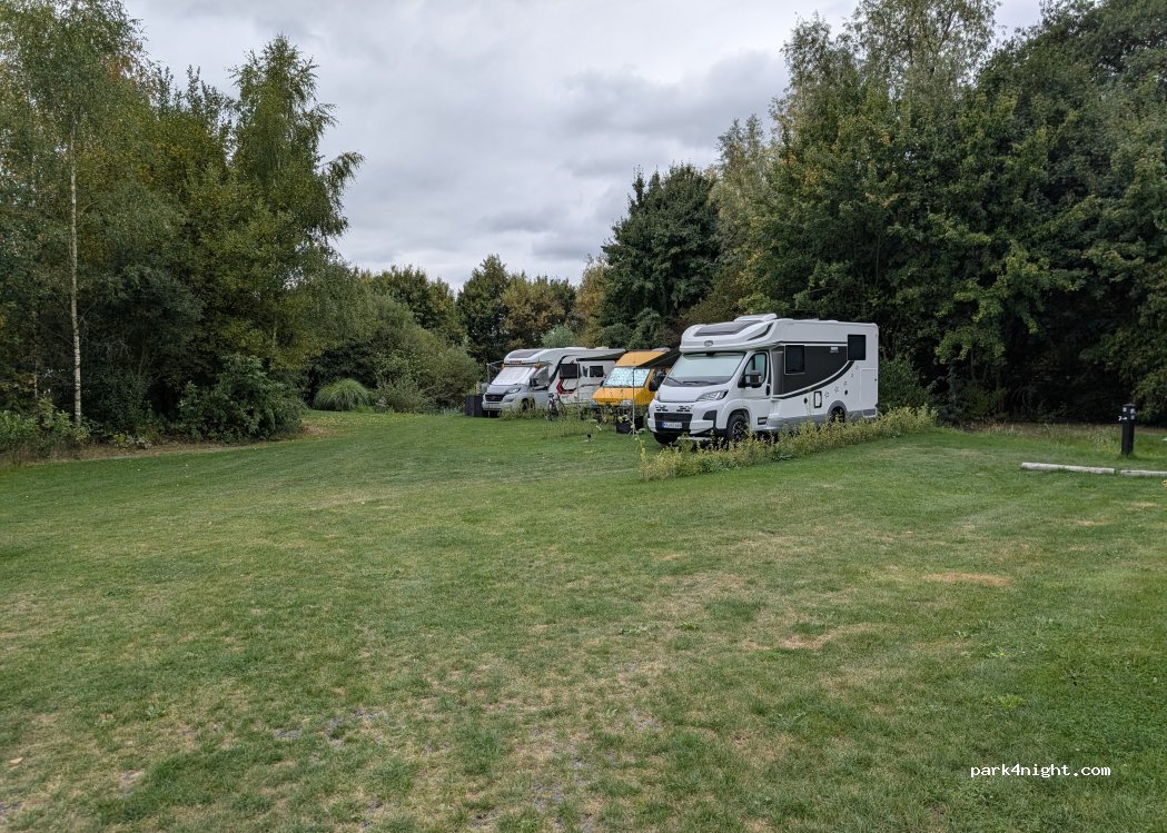 Beaux emplacements camping-car dans un petit camping verdoyant. Avec équipement de jeu, foyer et coin salon couvert.
