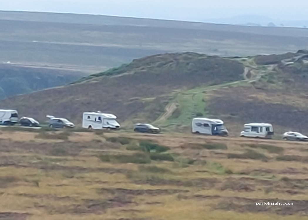 my favourite Peaks spot. usually a few vans overnight midweek, but lots at weekends. no facilities its basically a layby on a side road towards stanage edge and Hathersage. but the view is amazing. and a 4g signal!