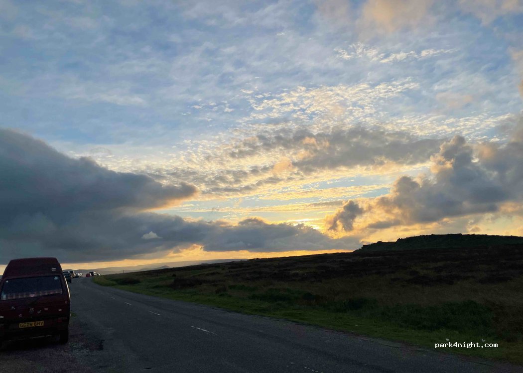 An alright park up, handy to do Stanage Edge and Higger Tor. Good sunsets. Busy road with a lot of traffic until late.
