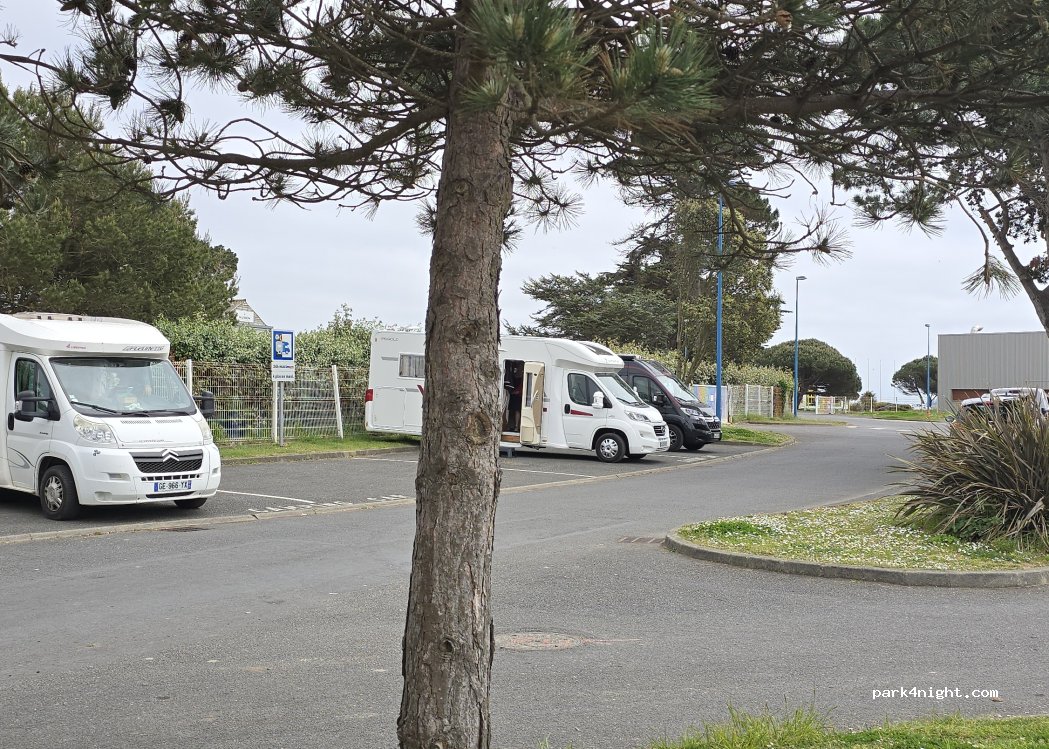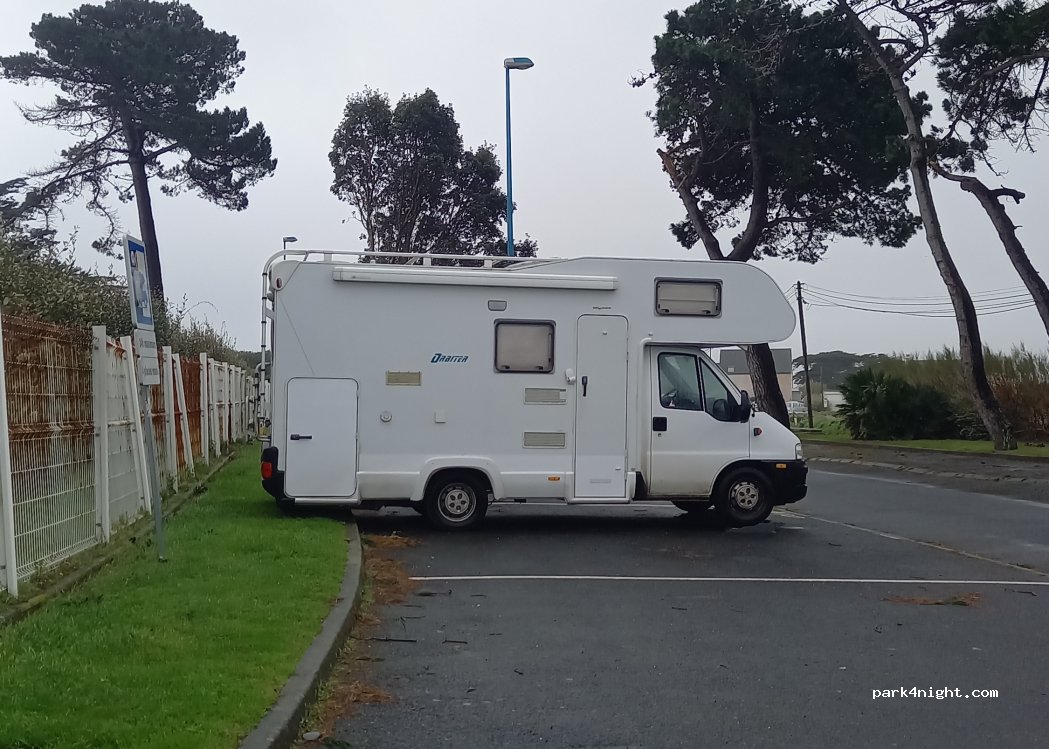 En biais, 4 camping-cars tiennent côte à côte. Accessible jusqu'à 9 m de long. Calme la nuit. Balades le long de la côte. Un peu loin pour les courses mais la marche à pied fait partie des activités des camping-caristes.