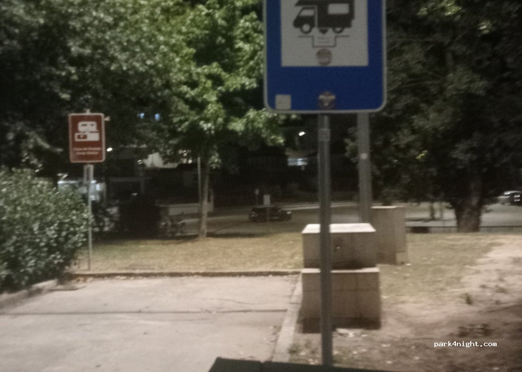 Muy bueno sitio para pasar la noche tranquila, cerca del centro de la ciudad, supermecado al lado, plazas bastate bien niveladas, baños cerca y con zona de vaciado y llenado. Al lado de las plazas hay mesas con bancos.