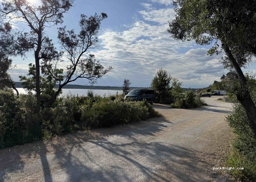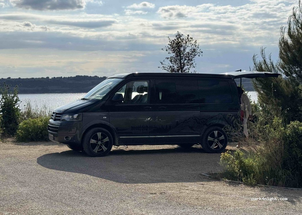 Passage d'une nuit dans ce parking. Tranquilité et vue sur l'Etang de Berres. Poubelles seulement.