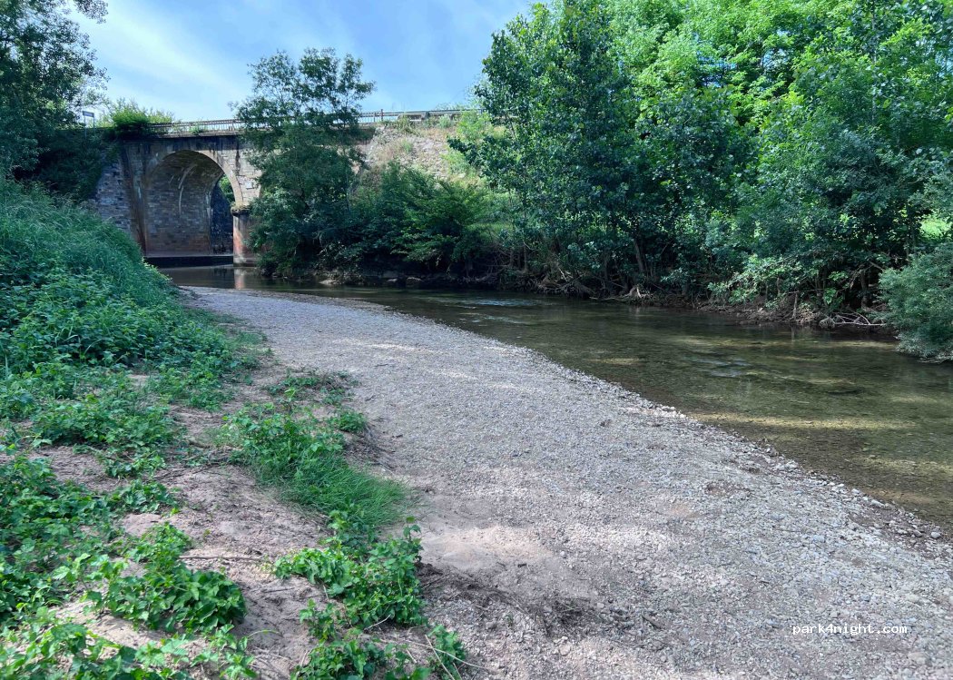 Parking on the left bank of the Vère, rather flat and shaded, there are picnic tables below... Unfortunately access to the site is closed by posts and padlocks. you can park and go eat on foot on the picnic tables but no way to spend the night because you park almost on the road