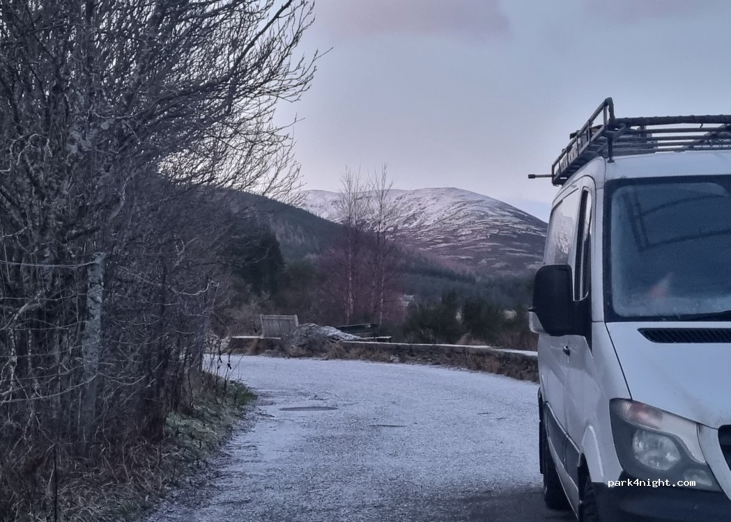 Very popular spot. If this one is full there is another one 2 minutes down the road! Nice view, bin, benches and quiet road. Very close to Braemar and Linn of Dee.