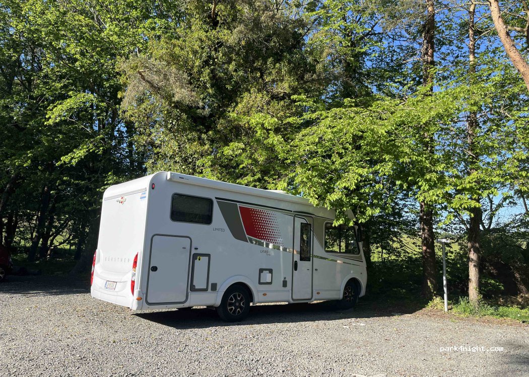 Mooie grote parkeerplaats. Veel plek voor diverse soorten campers. Je kunt er prachtig wandelen! Wij stonden er met een stuk of 10 campers. Enige nadeel was een grote groep jongeren die in het bos vuur maakte, bier dronk en erg luidruchtig was. Ook op de parkeerplaats zelf. Pas rond 00:30 waren ze weg. Dat was jammer. Verder een mooie plek!