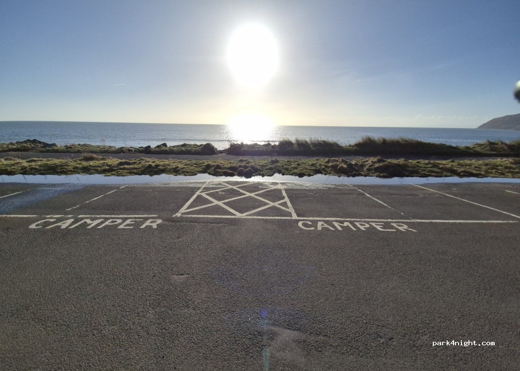 Lovely spot space for 1 van right on the beach very quiet picnic bench right beside you very peaceful. Spectacular views and lovely beach along the road to run your dog. No sign forbidding parking.