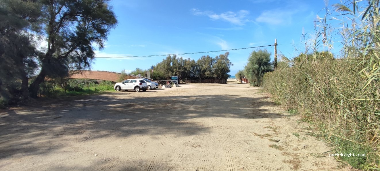 Parcheggio sterrato non grandissimo, ma davvero vicino all'ingresso della spiaggia pubblica, caratterizzata da un largo arenile. La strada per accedervi è stretta, ma fattibile. Vicino c'è un ponticello e una passerella dove poter passeggiare. Non ci sono altri servizi.