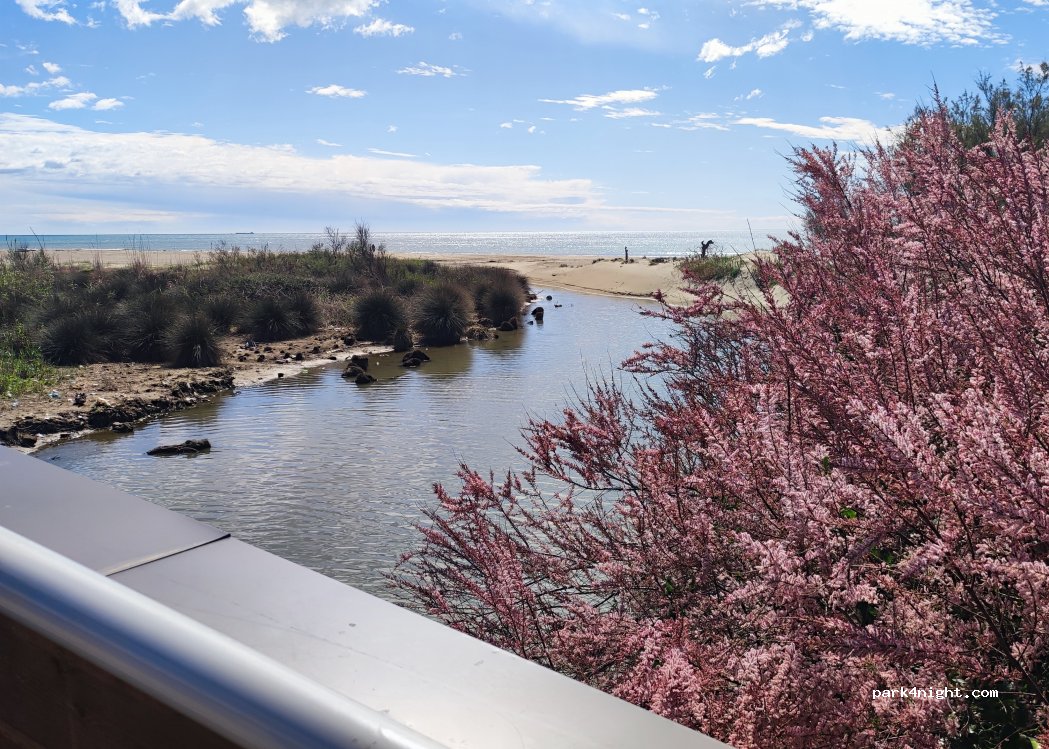 parking tranquille avec quelques restaurants à côté une possibilité d'une promenade il faut juste passer le petit pont qui a sur le parking ,une plage de sables. un peu sale, mais plus de détritus poubelle qu'autre chose. c'est gratuit nous avons passé la nuit. sur la plage poubelle de recyclage. la nuit a été calme. je conseille ce spot
