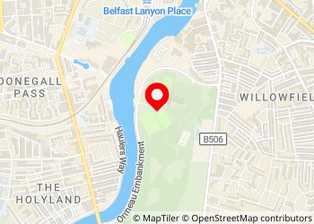 Car park for the Ormeau Park football pitches and indoor tennis arena. There are two parking lots, one is further back from the road and unpaved. Both are level. The car park closes at 11pm. A warden came by to close up around 11:10 and said it was fine for us to stay overnight (as long as we were okay being locked in). Waking up in the park is great and there’s a lovely bakery nearby called the bread and the banjo.