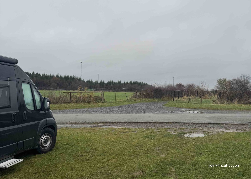 Parkplatz des Fußballplatzes, oben auf dem Hügel mit einem schönen Blick auf die Umgebung. Sehr ruhig