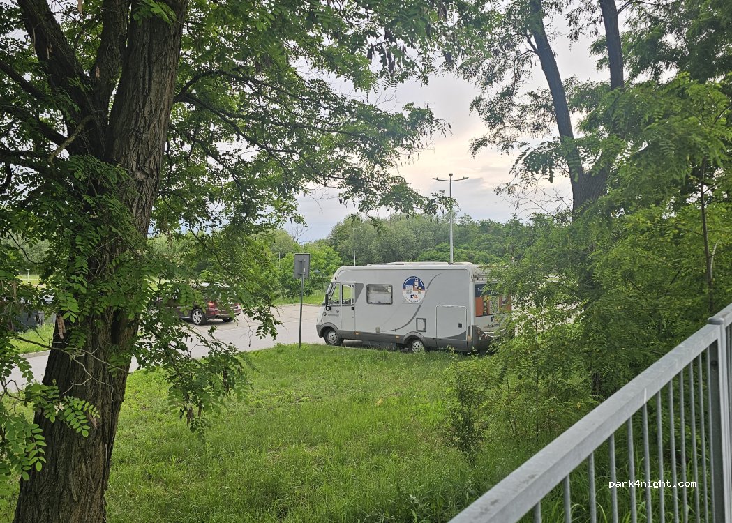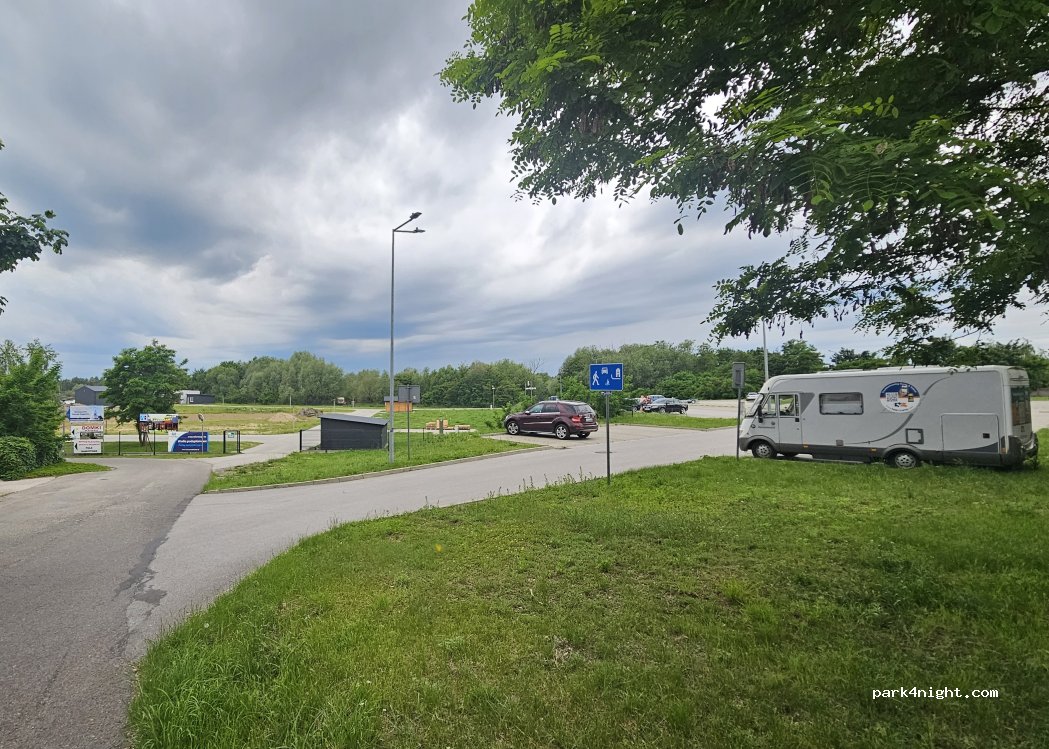 Großer Parkplatz oben, asphaltiert am See, sehr sauber, einige junge Leute am Abend, aber sehr ruhige Nacht. Sie haben eine Pumpe, um Wasser zu nehmen. Wir verbrachten 4 Nächte ohne Probleme, die Polizei kam, um die jungen Leute zu überprüfen, aber nicht wir.