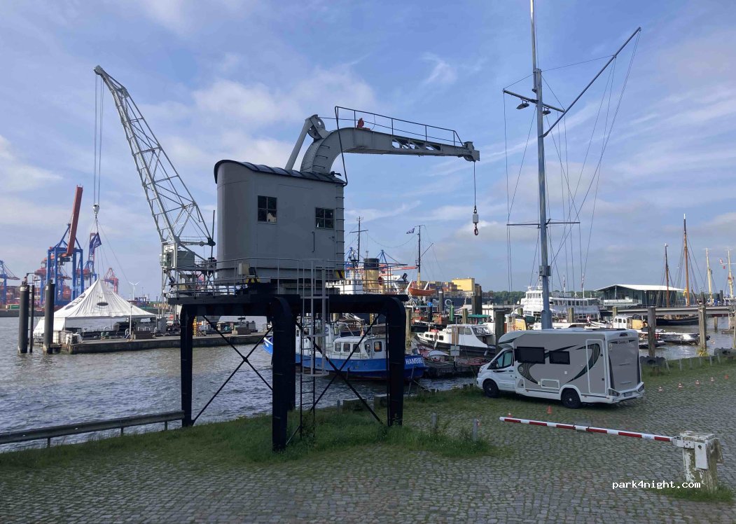 Mehr Hamburg geht nicht. Stellplätze liegen direkt am Elbwasser. Herrlicher Blick auf Elbe, Containerterminal und Museumsschiffe. HVV Fähranleger Linie 62 und HVV Bus 30 in 2 Minuten erreichbar.