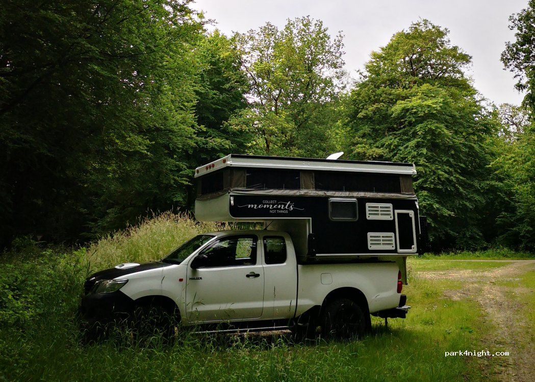 Kleiner Parkplatz im Wald, wird von Wanderern und Gassi-Gehern besucht, jedoch nachts ruhig.