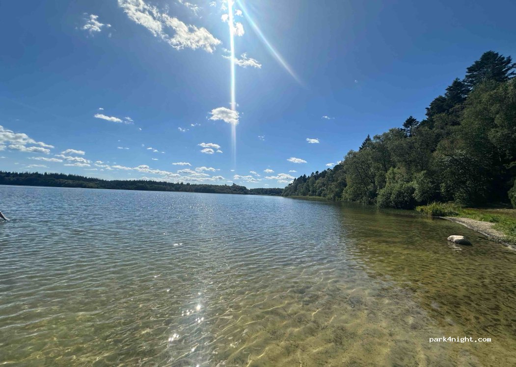 Sehr schöner Platz am See. Kein Schild gefunden das die Übernachtung verbietet. Die Straße ist von hier nur bei LKW Verkehr deutlich zu hören. Picknickbank und Strand direkt vor dem Platz.