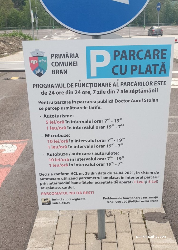 Super parking close to the Bran Castle. 10 lei/h from 7 a.m.to 7 p.m. and 1 lei/h from 7 p.m. to 7 a.m. We spet one night. Very quiet and calm.
