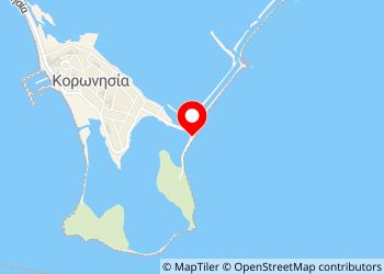 A pleasant, empty parking spot on a low road near the village of Koronisia. There are a few taverns and cafes in the village.
