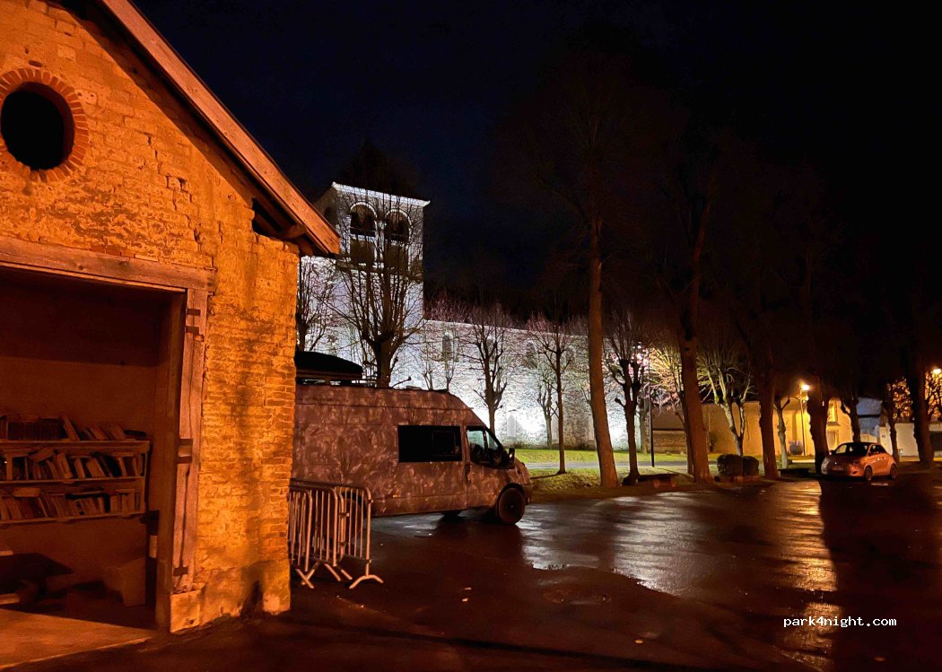 Bel emplacement avec aire de jeux pour les enfants. Endroit très calme et très agréable avec jolie église éclairée le soir et un petit cours d'eau. Idéal pour camping car avec remorque