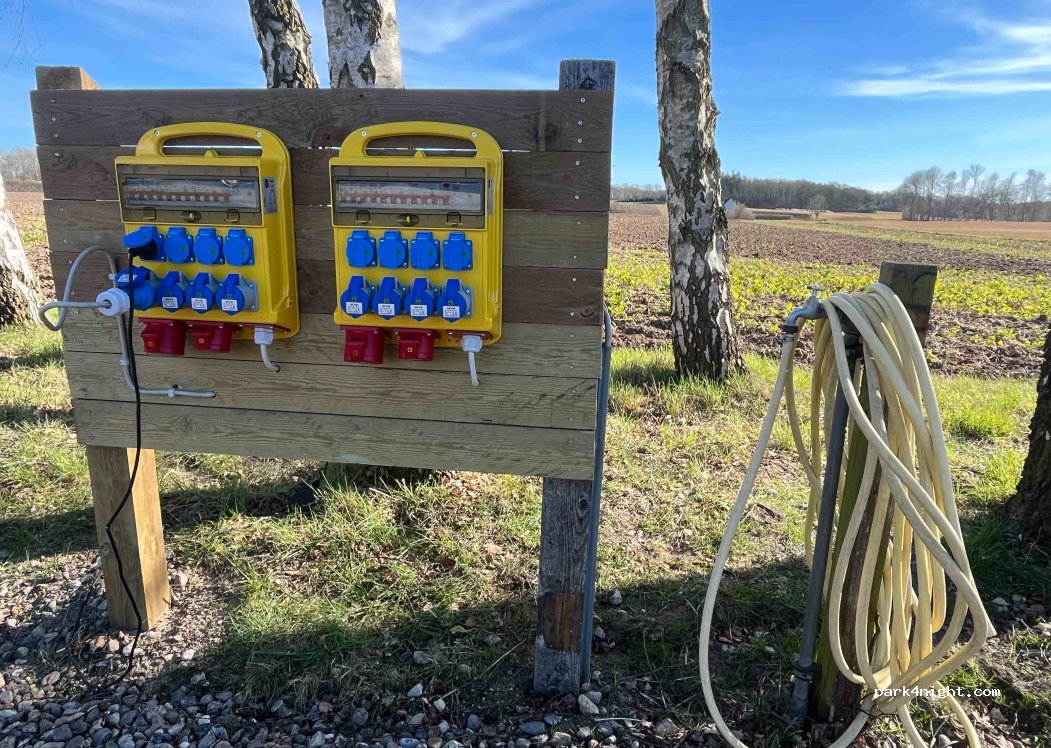 Very quiet location, no noise, in the countryside, two large buildings in the neighborhood. There are tree tables with benches on grass. Ten electrical outlets and a water hose. Pay by cash in the mailbox, There are envelopes in the lover box and paying in the upper box. You Can also pay via mobilepay (danish pay system)