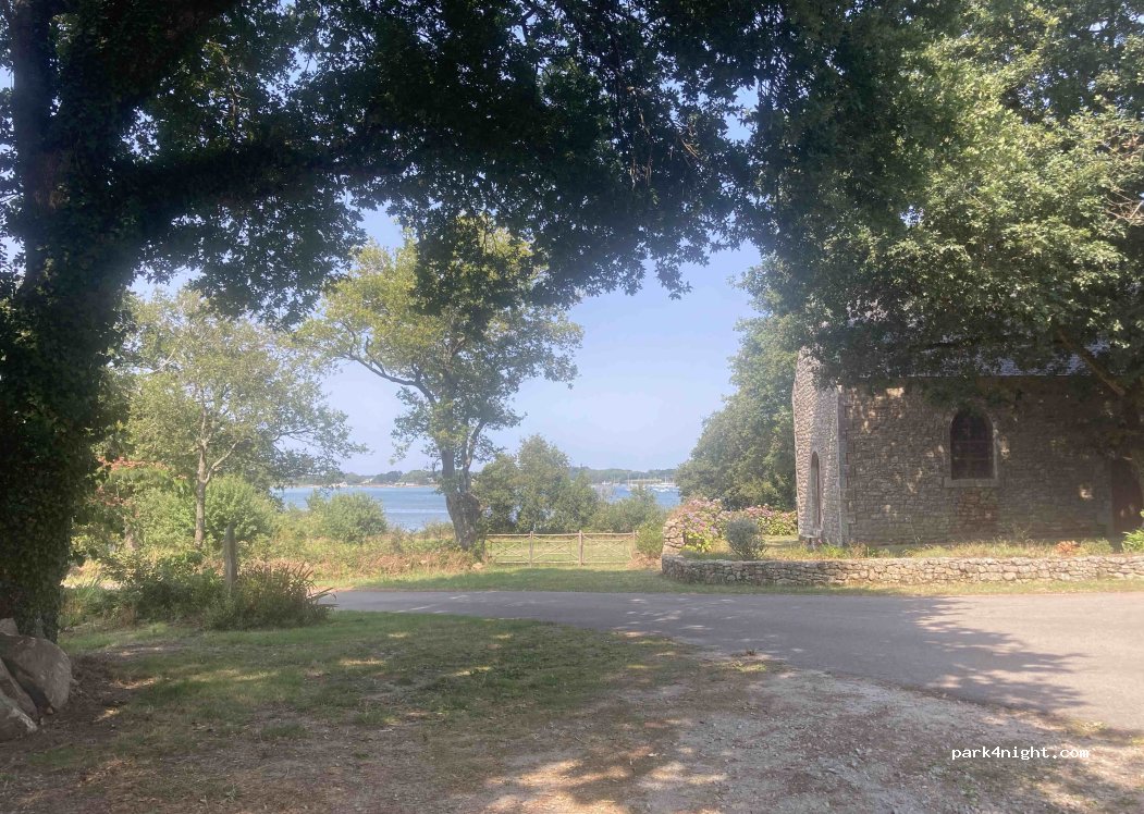 Parking près de la chapelle, autorisé de 9h à 21h, vue sur la mer. Endroit très calme