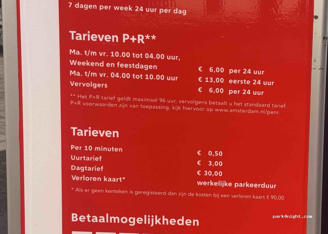 Viajo en furgoneta y este sitio me ha venido muy bien para ir a Amsterdam. En la zona donde he aparcado (donde me mandaba esta localización) no he tenido que pagar. También hay otro parking con barrera.