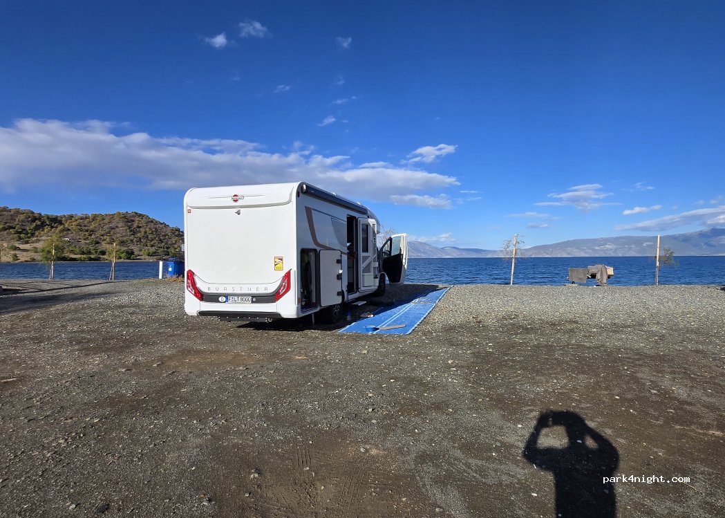 schöner Stellplatz, auf einem großen schotterfeld, direkt am Meer. gut erreichbar, auch mit großen Wohnmobil. großer langer Strandabschnitt mit Kies, viele kleine Bäume gepflanzt und sauber.