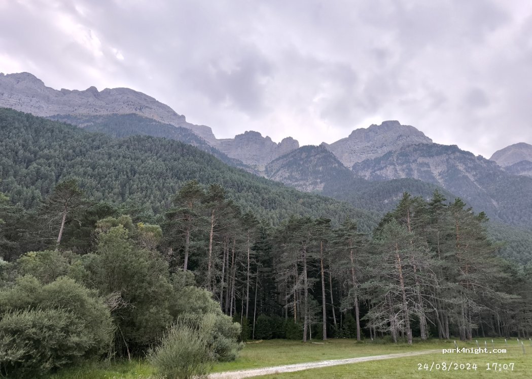 Hemos pasado una noche muy tranquila. Está al lado del río y las vistas son muy bonitas. No hay servicios, pero está cerca del pueblo de Bielsa.