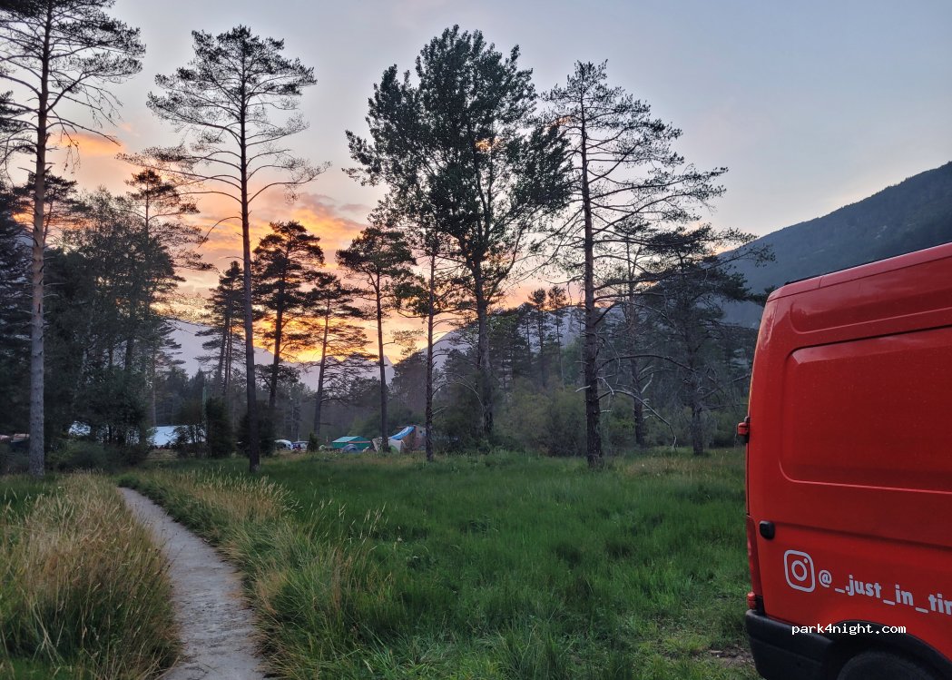 El lugar está muy bien para aparcar y pasar la noche después de visitar el Valle de Pineta. No es Parque Nacional y se permite pernoctar. Éramos muchas furgos y AC, así que es preferible llegar antes de las 21h para encontrar sitio. No le doy un 5 porque había una zona de acampada y han estado haciendo ruido toda la noche y parte del día.
