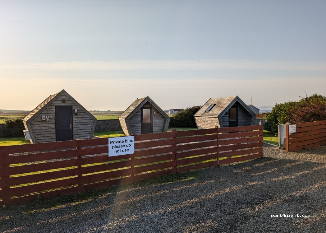 super alternative wenn man sonst keinen Platz findet und am Morgen die erste fahre nach Orkney nehmen will, wenn man im Hotel-Restaurant isst oder an der Bar trinkt(Hunde willkommen!), muss man nichts bezahlen. ansonsten ist es nur ein Parkplatz vor den glamping pods des Hotels, aber sehr ruhig und zentral gelegen.