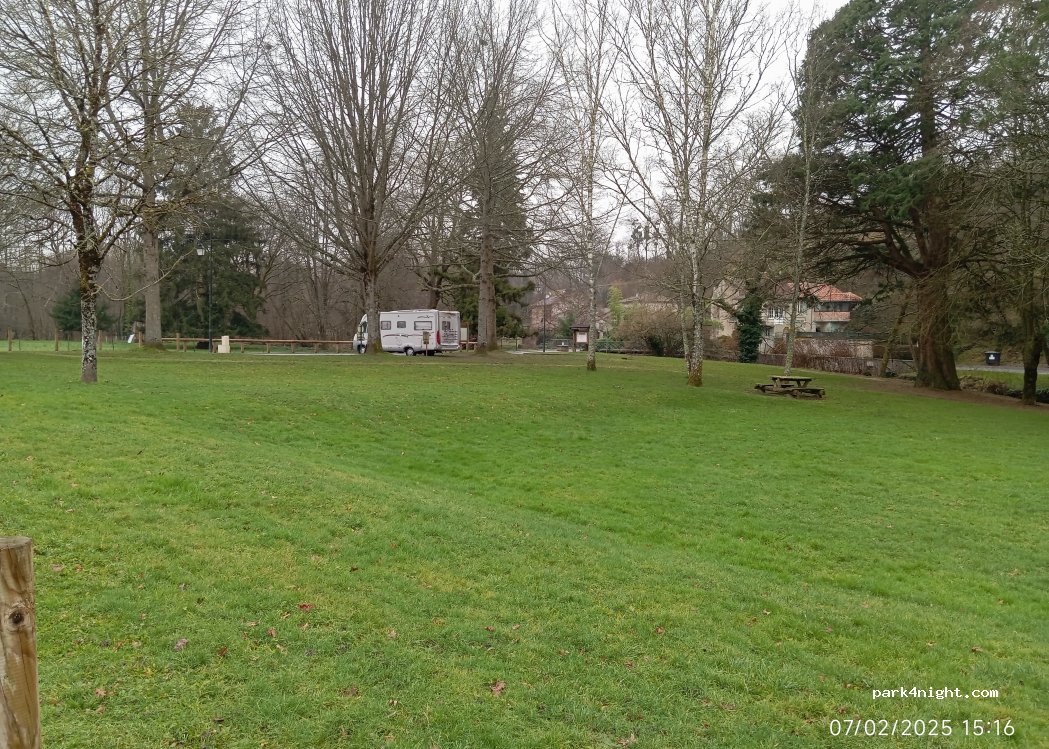 Great spot that backs onto a park & river with some super views up to the medieval town of Bellac. There are spaces for 5 motorhomes & 1 disable parking. There is also a new service point about 200 metres up the road to Bellac - thank you to the municipality for supplying such a gorgeous stop