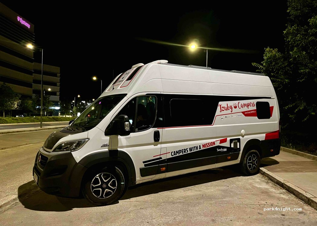 Relatively big parking, flat, good internet 4G reception. There's a bus stop nearby and a direct connection to the city centre. We felt rather safe at night, although there were some pedestrians crossing-by. There was also some noise and a traffic at night. But it's a city parking so it's normal.