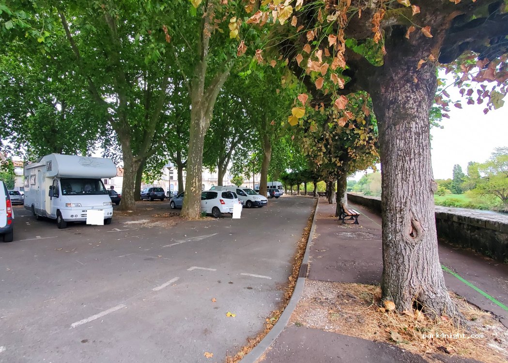 Parking de ville calme, grand, au bord de la rivière. Il faut aller au fond pour avoir de la place pour se garer et manœuvrer. Un peu humide l'hiver mais centre acceccible en quelques minutes.