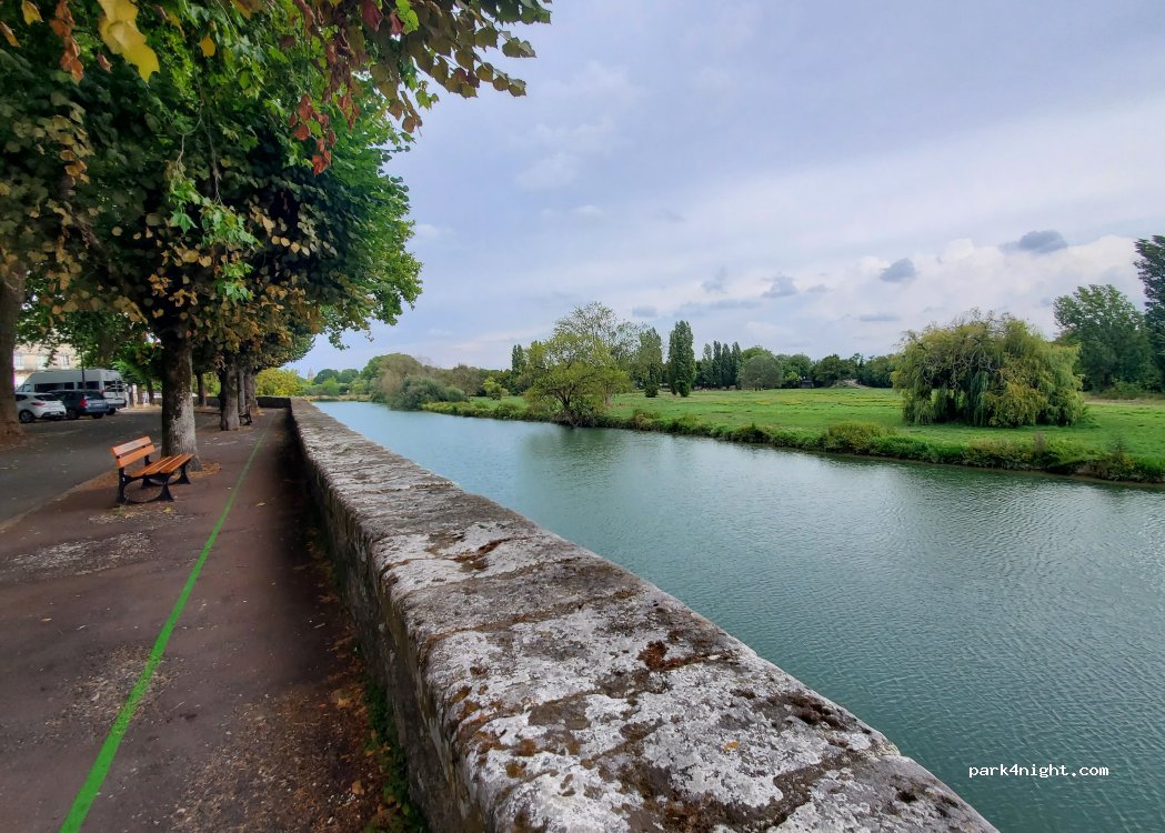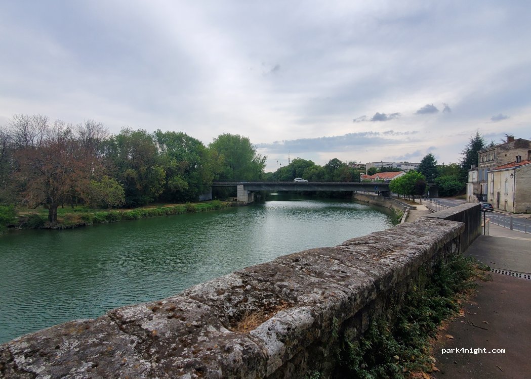 Accès au centre ville et au parcours touristique piétonnier (ligne verte). stationnement payant à renouveler au moins une fois dans la journée (limité à 4 heures environ 4€). Un peu bruyant la nuit. idéal pour visiter Saintes.