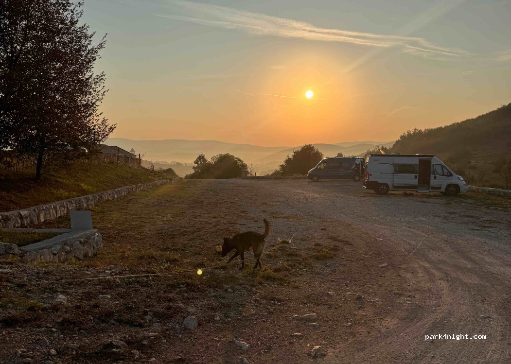 Uns wurde angeboten, dass wir die Nacht kostenfrei auf dem großen Schotterparkplatz verbringen können, sogar Strom wurde angeboten, Wasser war aufgrund der kalten Temperaturen u. Frostgefahr abgedreht, Toiletten geschlossen, abseits gelegen, Ausgangspunkt für Wanderungen, sehr ruhig, ein paar Laternen erhellen die Nacht, die geführte Tour durch die Höhle Samograd ist sehr empfehlenswert