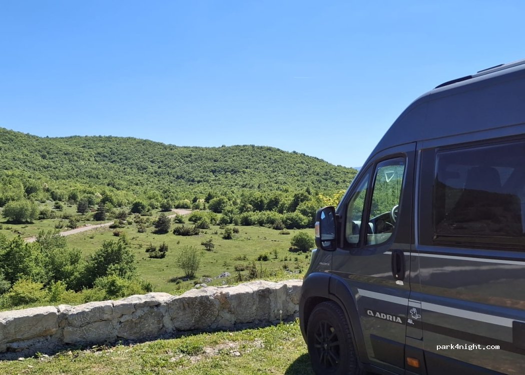 Ein wunderschöner Platz mit toller Aussicht. Wenn man ein Ticket für 65kn zur Besichtigung der Höhle kauft, ist die Übernachtung mit drin. Es gibt Strom und Toiletten. Die Führung durch die Höhle ist wirklich zu empfehlen. Wir hatten eine fast private Führung mit noch 2 anderen Besuchern. Der Guide ist sehr nett.