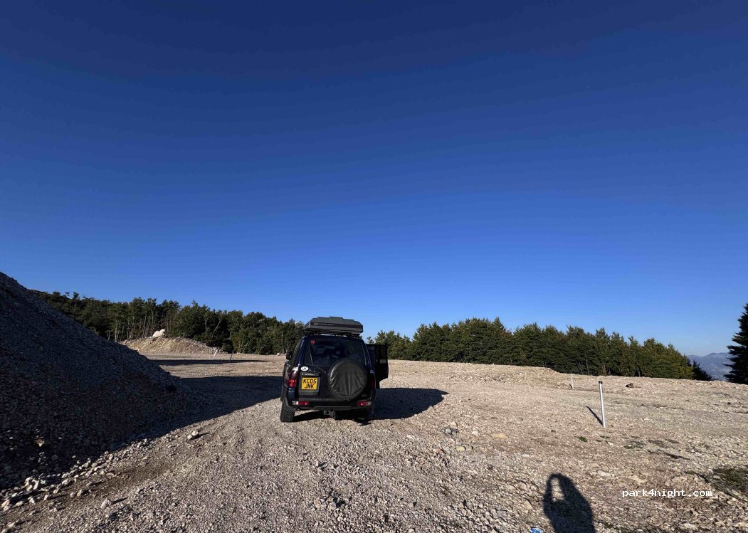Large clearance off the main road, it is accessed by a small paved road. We parked there to go up to the top of Mt Lovcen and had a very quiet night there.