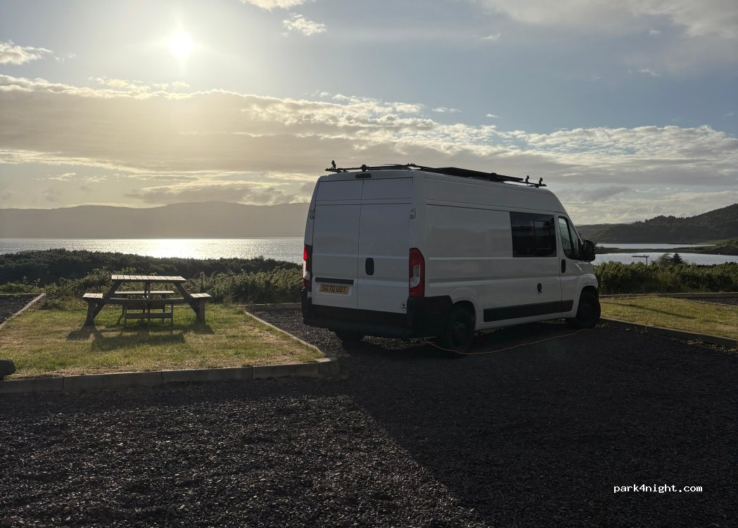 Haben hier einen wirklich tolle Nacht verbracht. Die Stellplätze sind eben mit Kiesunterlage und nebendran mit kleinen Rasenflächen ausgestattet. Die Nacht kostet 35£. Die Sanitäranlagen sind sehr sauber und gepflegt. Die komplette Anlage ist sehr schön und bietet einen wunderschönen Blick über die Bucht.