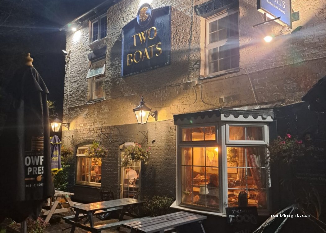 The two boats inn sits on the canal with carpark at rear. warm friendly welcome. excellent food at good prices. there happy for you to spend the nite if you go in for dinner which I highly recommend ?.