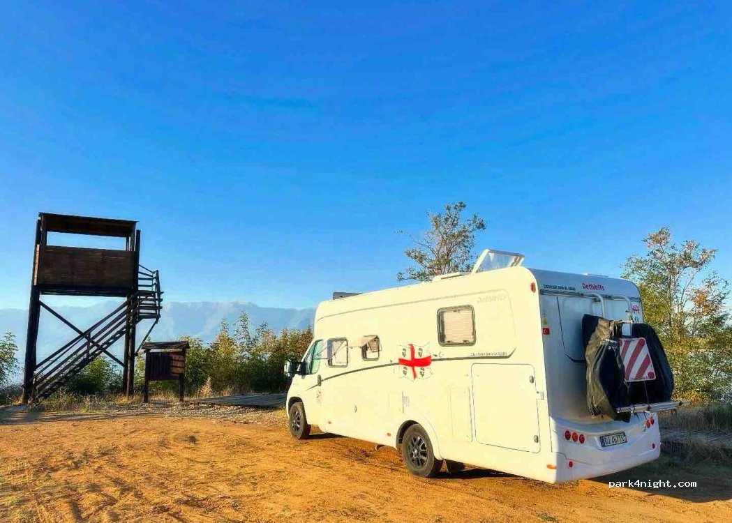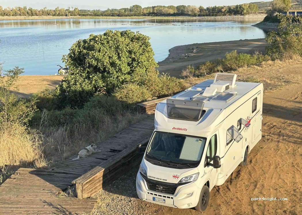Accanto alla strada ma traffico che comunque non disturba per nulla considerando poi che di notte è quasi inesistente. Senza nessun riparo da alberi può essere caldo. Ottimo spot con una pineta al di sopra che alla fine in cima alla collina ha una chiesetta. Per mezzi fuori strada consiglio anche la sosta davanti alla chiesetta dove trovate anche un rubinetto di acqua funzionante.