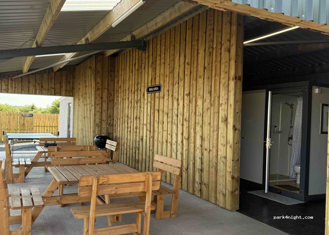 A great wee site, they seem to be trying to think of everything that people would need when they are visiting, very well thought out. Great showers/toilets, washing up and laundry was all spotless. They have provided under cover bbq and picnic areas and drying areas etc. also a lovely maintained walk beside the main site and it's all about a 25 minute walk from the beach. The site has a wee park and toys for younger kids but locally in the village there is a larger park, football pitch and tennis courts.