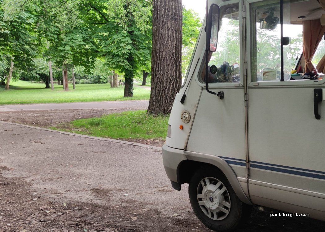 Shady spot under the trees by the lake. Right at the start of waking/cycling paths around the lake. It is much visited by locals. We stayed Friday night and there was a lot of traffic as well as loud music from a party in the distance until at least midnight. However, it feels safe and the locals are friendly.
