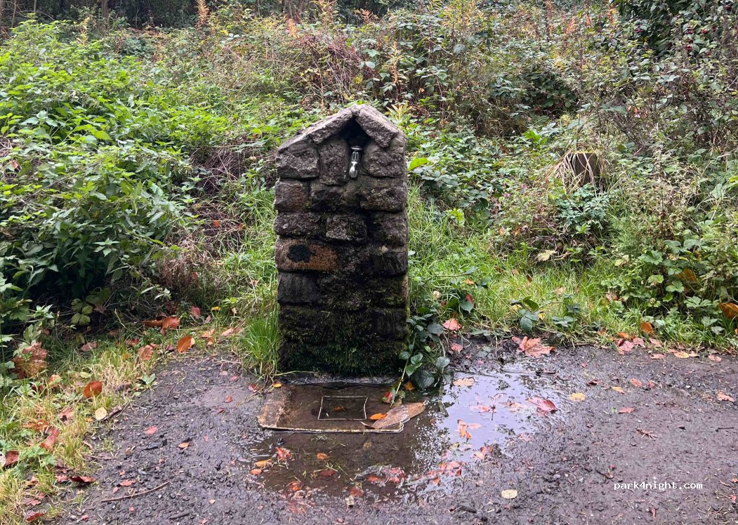Watertap te vinden net voor de parking linksaf de weg in en direct links ziet u de waterkraan.