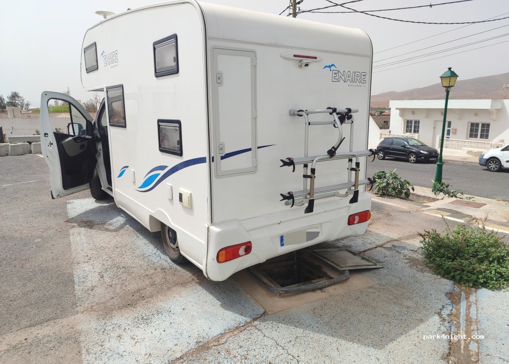 È un semplice tombino da scoperchiare per vuotare acque nere e grigie ma ha vari lati positivi: gratis, facile da trovare, ampio spazio di manovra e abbastanza pulito/senza odori. Comodo tornando dal sud dove i servizi non ci sono! Grazie antigua! L’acqua si puo caricare in tantissimi benzinai dove dice “aire/agua”