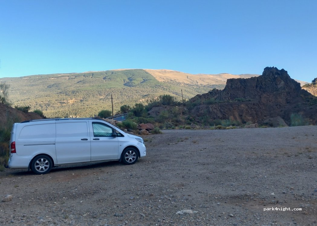 Lieu très calme et tranquille pour passer la nuit dans la nature. Un petit air de la planète Mars aussi. Des bouquetins sauvages se promènent sur la roche et un berger est passé avec son troupeau de chèvres et nous a juste fait signe. Aucune lumière aux alentours, ce qui est parfait pour admirer les étoiles une fois la nuit tombée. Seul bémol, le van est visible de la rue.